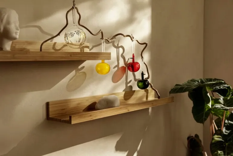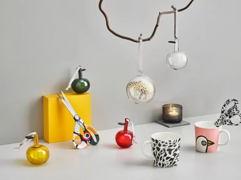 Iittalas glasäpplen kombinerar modern glaskonst med gamla jultraditioner – visste du att julgranen traditionellt pryddes med äpplen innan julgranskulorna kom? De nyckfulla prydnaderna, som är skapade av konstnären och formgivaren Oiva Toikka, kommer med små band som gör dem perfekta för granen eller kransen.