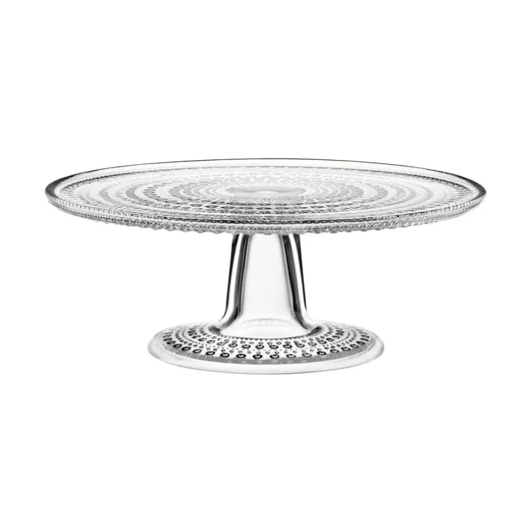 Iittalas Kastehelmi-tårtfat är en del av Oiva Toikkas älskade Kastehelmi-kollektion. Denna tårtfat på piedestal är perfekt för att servera alla typer av tårtor, och den fungerar också som ett vackert serveringsfat för mindre godsaker, söta eller salta.