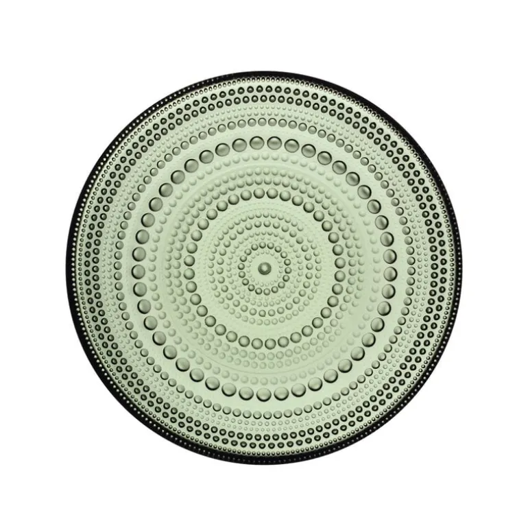 Iittalas tallrik Kastehelmi ingår i den populära glaskollektionen med samma namn, formgiven av Oiva Toikka. Den lilla tallriken är dekorerad med en charmig ton av tallgrön, en nyans som både är representativ för skogarna i Norden och som samtidigt är ett utmärkt exempel på Iittalas exceptionella känsla för färger. Kastehelmi-tallriken passar perfekt till servering av snacks och andra aptitretare, men även som sandwichtallrik.