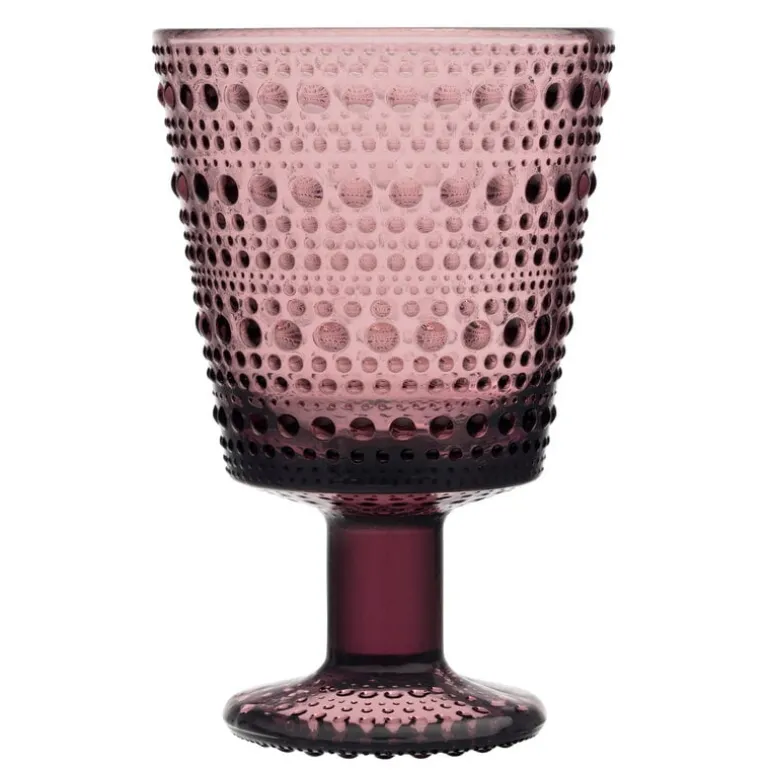 Iitalas Kastehelmi dricksglas med stam är en del av den populära Kastehelmi-kollektionen med glas som designades av Oiva Toikka. Universalglasen på fot har dekorerats med strängar av glasbubblor, och Kastehelmi sätter prägel på alla dukade bord, allt från frukostbordet till mer formella middagar. I setet ingår två dricksglas som har en charmig, ljungliknande färgton, en nyans som är representativ för skogarna i Norden och som samtidigt är ett utmärkt exempel på Iittalas exceptionella känsla för färger.