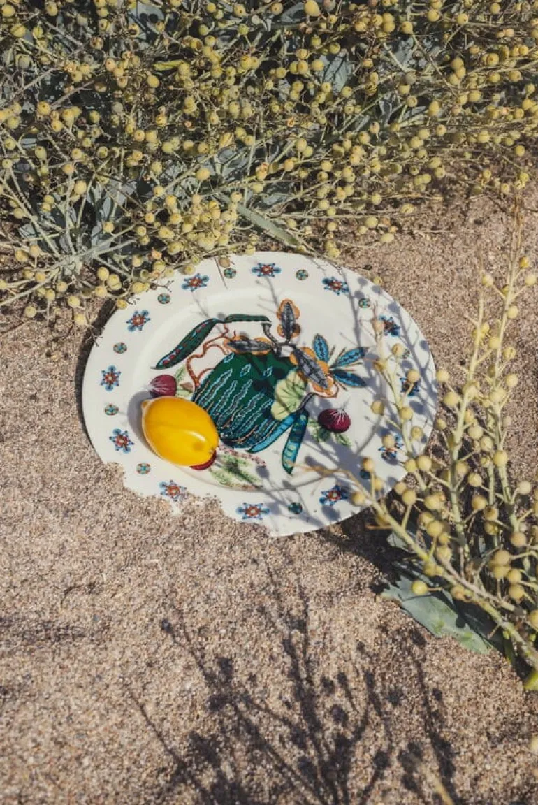Tallriken Taika Sato från Iittala är prydd med en design som skapats av Klaus Haapaniemi, som låtit sig inspireras av skördetiden och sin egen trädgård. Den extra stora tallriken kan användas som mattallrik, serveringsfat eller till och med som undertallrik vid finare bordsdukningar.