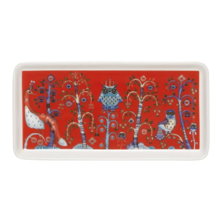 Iittalas lilla Taika-tallrik är dekorerad med en underbar fantasivärld som designats av Klaus Haapaniemi. Taikas mystiska illustrationer väcker kreativiteten till liv och bjuder in till att skapa egna berättelser med hjälp av både porslin och inredning. Den mångsidiga rektangulära tallriken är perfekt för servering av sushi, bakverk och snacks, och kan även användas som en charmig förvaringsplats för smycken och andra skatter på nattduksbordet eller i badrummet.