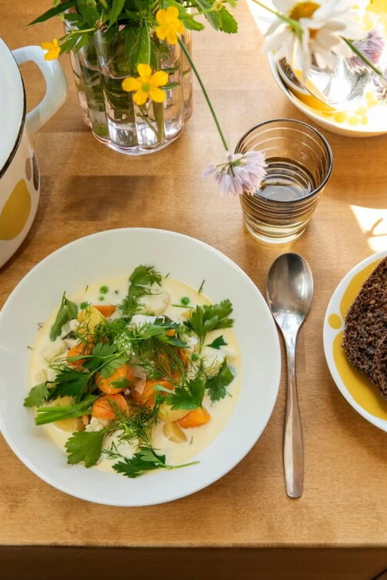 Iittalas tallrik Teema är en del av den ikoniska servisen med samma namn. Den djupa tallriken kan användas till att servera soppa, pasta eller sallad.