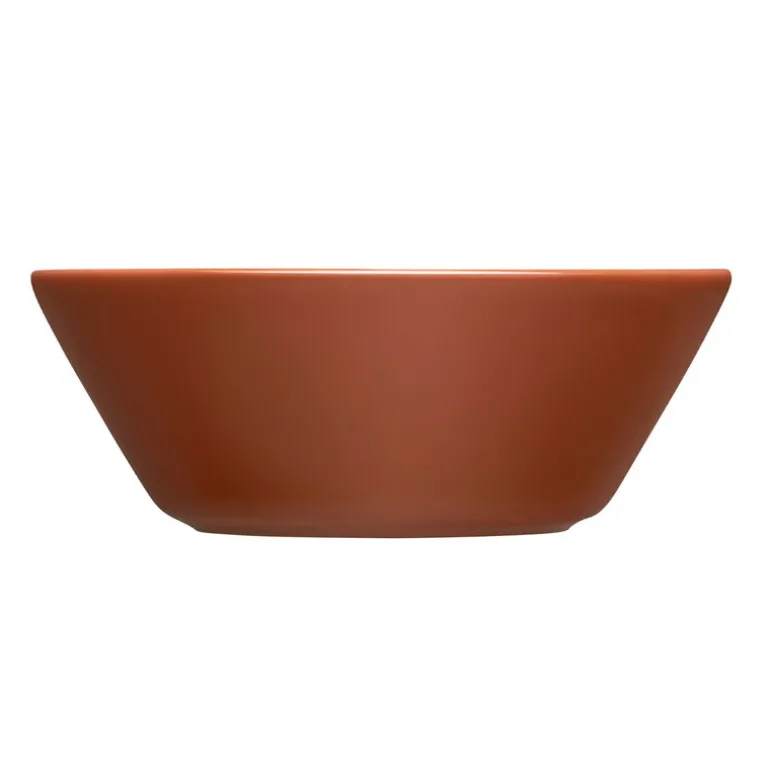Iittalas Teema-skål, en del av den ikoniska eponyma porslinsserien, kan användas för att servera yoghurt eller gröt till frukost, soppa eller dessert till middag, eller godis och snacks på en filmkväll eller när du har vänner över. Den lilla skålens bruna, vintage-inspirerade nyans efterliknar kollektionens ursprungliga färgpalett från 1952, och för att ytterligare hedra den ursprungliga serien, då kallad Kilta, har Iittala också gett tallriken en halvgenomskinlig glasyr som varierar något beroende på föremålets form. Varje vintagebrun tallrik är därför unik.