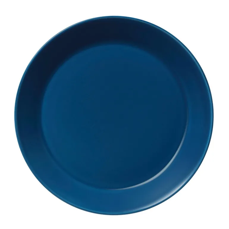 Iittalas Teema-tallrik, en del av den ikoniska eponyma porslinsserien, kan i princip användas till allt: till frukost, sallader och förrätter eller till och med som en liten middagstallrik. Den medelstora tallrikens blå, vintage-inspirerade nyans efterliknar kollektionens ursprungliga färgpalett från 1952, och för att ytterligare hedra den ursprungliga serien, då kallad Kilta, har Iittala också gett tallriken en halvgenomskinlig glasyr som varierar något beroende på föremålets form. Varje vintageblå tallrik är därför unik.