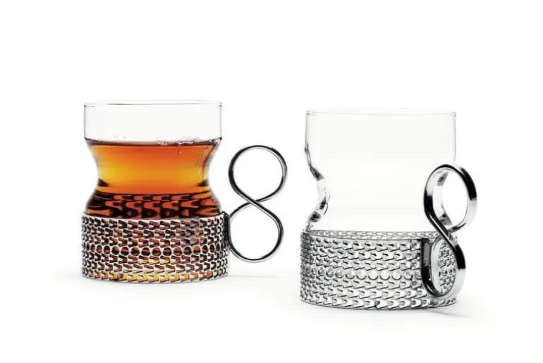 Iittalas Tsaikka-glas formgavs av Timo Sarpaneva år 1957. Tsaikka är perfekt till varma drycker, som te eller glögg. Tsaikka är ett organiskt format glas som låter dig njuta av färgen på drycken, samtidigt som den karakteristiska nickelpläterade hållaren gör att du slipper bränna dig. Glasen säljs i par om två.