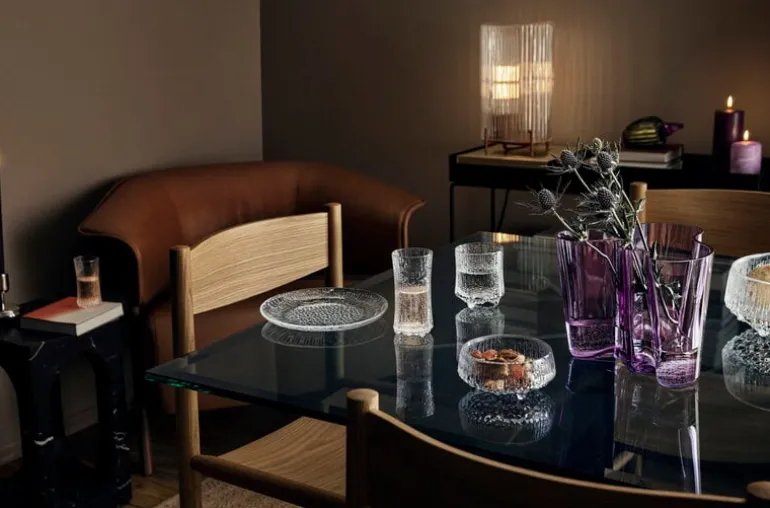 Ultima Thule-skålen är en del i Iittalas ikoniska serie glas som Tapio Wirkkala skapade 1968. Inspirationen till kollektionen har hämtats från de smältande vårisarna i norra Finland. Ultima Thule framställs med den så kallade isglastekniken, som Wirkkala och Iittala tog fram tillsammans. Formerna imiterar naturen och ändras gradvis allteftersom det smälta glaset bränner ytan i träformarna. 1969 valde det finska flygbolaget Finnair att använda Ultima Thule till sin nya rutt mellan Helsingfors och New York. De har än idag kvar glasen i Business Class. Ultima Thule kristalliserar kraften i finsk glasdesign och den distinkta klassikern bidrog även till Iittalas internationella genomslag. Ultima Thule har kommit att bli en av Iittalas mest populära glaskollektioner, och demonstrerar tydligt Wirkkalas synsätt, att det är de enkla objekten som kräver störst arbete.