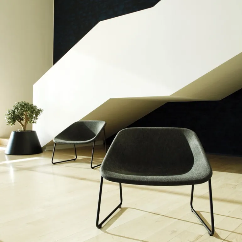 Kola Lounge är en lätt stol vars sits har ett tilltalande och mjukt formspråk. Kola Lounge är tillverkad av 100 % återvinningsbar polyesterfilt med en stomme av epoxybehandlat stål. Fåtöljen Kola Lounge är din vän när du vill skapa en trevlig och vänlig inredning. Kola Lounge passar mycket bra i restaurangmiljö och konferensrum, den är även en utmärkt fåtölj att ha i en lounge eller foajé.