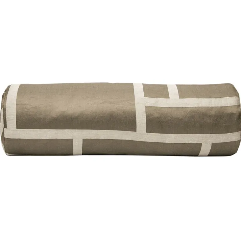 Johanna Gullichsens Palazzo-tubkudde tar med en skimrande lyxighet som påminner om mäktiga italienska palats och implementerar det på ett modernt och minimalistiskt sätt. Bolsterkudden Palazzo är en del av Johanna Gullichsens Loom-kollektion som funnit inspiration från traditionell handvävning. Loom-kollektionen tillverkas från rent linne, bomull och silke, den har flera olika grafiska mönster i toner som tagits från det venetianska landskapet: dyrbart silver och guld, blå och jordig lera.