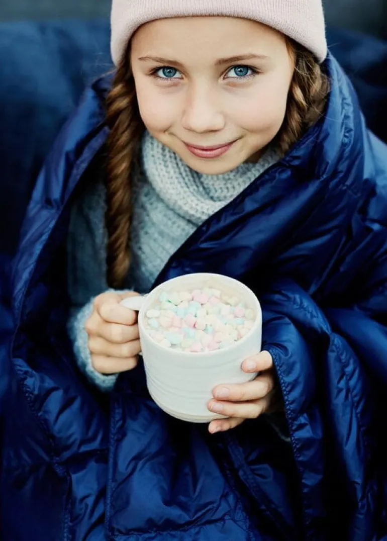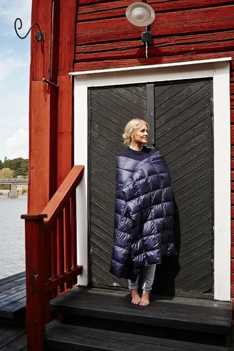 Den dunfyllda pläden Kulkuri från det finska märket Joutsen sveper in dig i en lyxigt mjuk omfamning. Tack vare fyllningen av 100% rent dun känns pläden lätt och andas, men är ändå behagligt varm. Det quiltade överdraget är tillverkat av slitstark mikrofiber som är vatten- och smutsavvisande, vilket gör Kulkuri idealisk för utomhusbruk under långa kvällar på terrassen eller vid utomhusevenemang, till exempel. Den mörkblå pläden är packbar och levereras med en påse för enkel transport, så den kan tas med på resor och utflykter. Pläden är Oeko-Tex-certifierad.