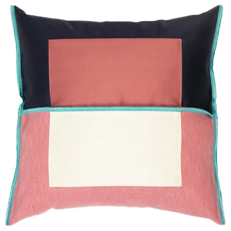 Juslin Maunulas kudde är dekorerad med ett tyg som är framställt av grafiskt utformade bitar i olika färger, där de kraftiga sömmarna på ett lekfullt sätt lämnats synliga. Kombinationen av de olika nyanserna ger ett charmigt intryck var du än placerar den – den dubbelsidiga kudden passar lika perfekt i vardagsrummet som i sovrummet. Genom att välja ut och matcha flera olika kuddar med varandra kan du skapa ett ännu mer spektakulärt helhetsintryck!