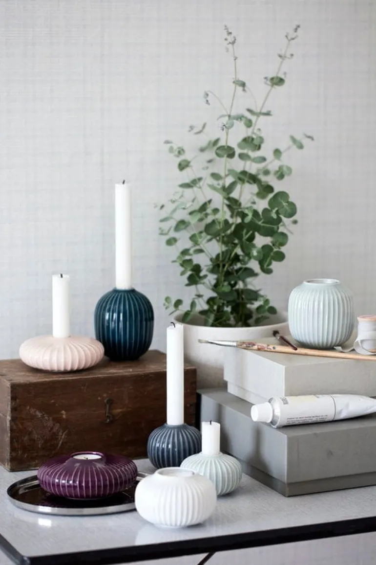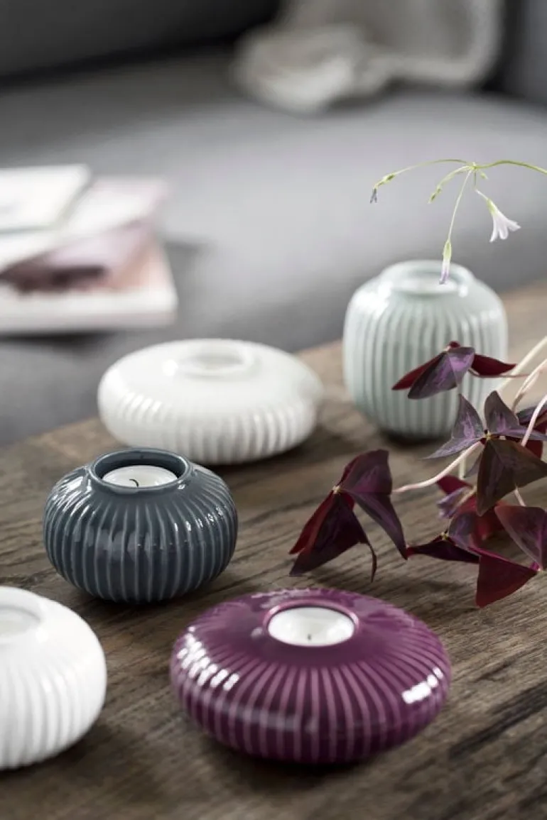 Värmeljushållaren Hammershøi, som designats av Hans-Christian Bauer för Kähler, ingår i en vacker keramikkollektion med namn efter konstnären och keramikern Svend Hammershøi. Han arbetade för Kähler från 1893 fram till sin död – hans stora vaser och skålar smyckades ofta med enkla vertikala fåror. Samma dekorativa mönster upprepas i den tidlösa Hammershøi-kollektionen som är perfekt för både vardag och fest.