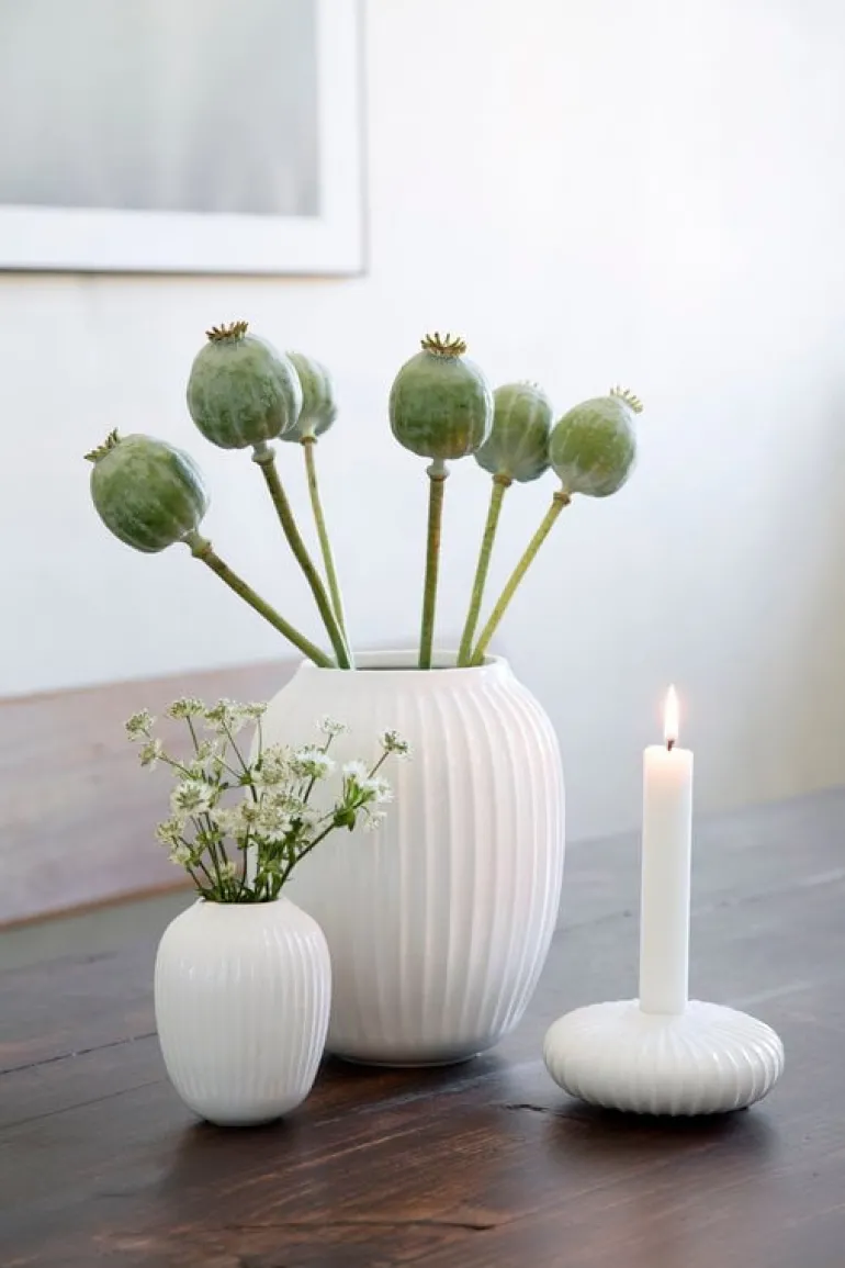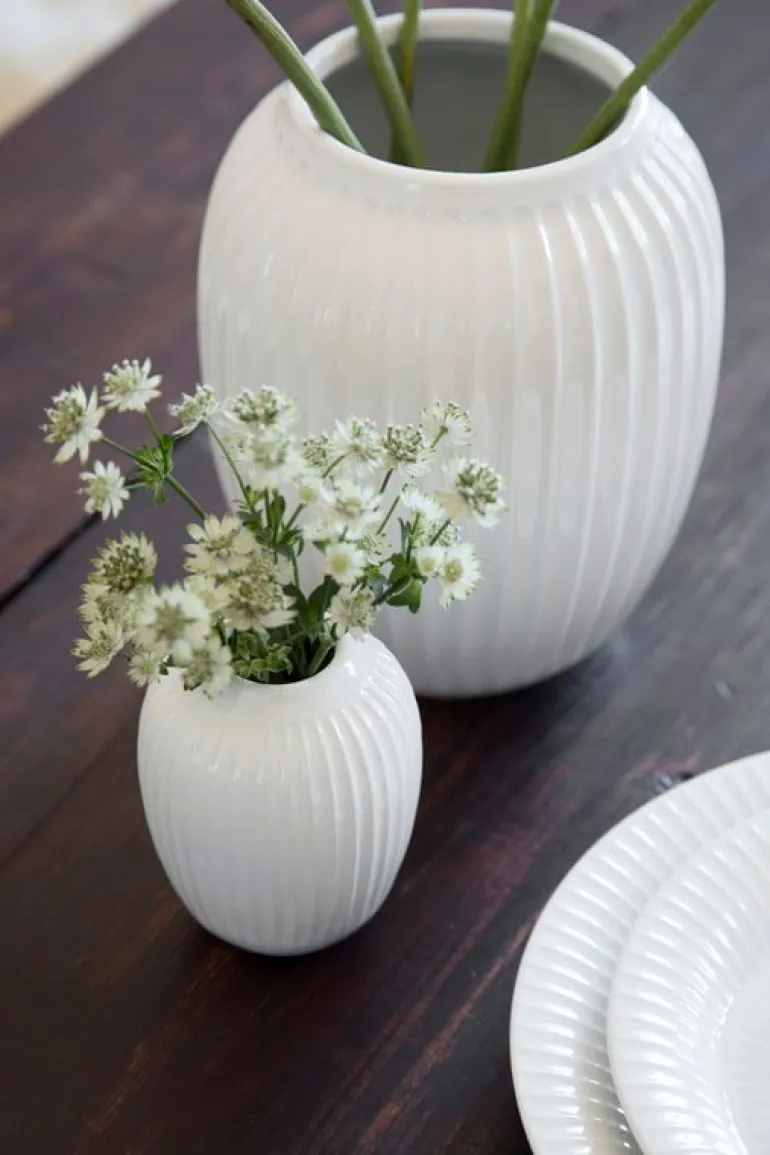 Vasen Hammershøi, som designats av Hans-Christian Bauer för Kähler, ingår i en vacker keramikkollektion med namn efter konstnären och keramikern Svend Hammershøi. Han arbetade för Kähler från 1893 fram till sin död – hans stora vaser och skålar smyckades ofta med enkla vertikala fåror. Samma dekorativa mönster upprepas i den tidlösa Hammershøi-kollektionen som är perfekt för både vardag och fest.