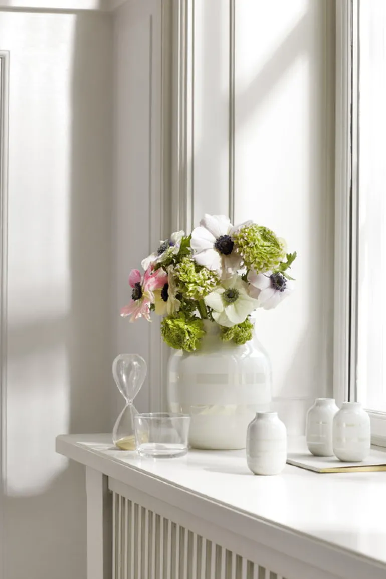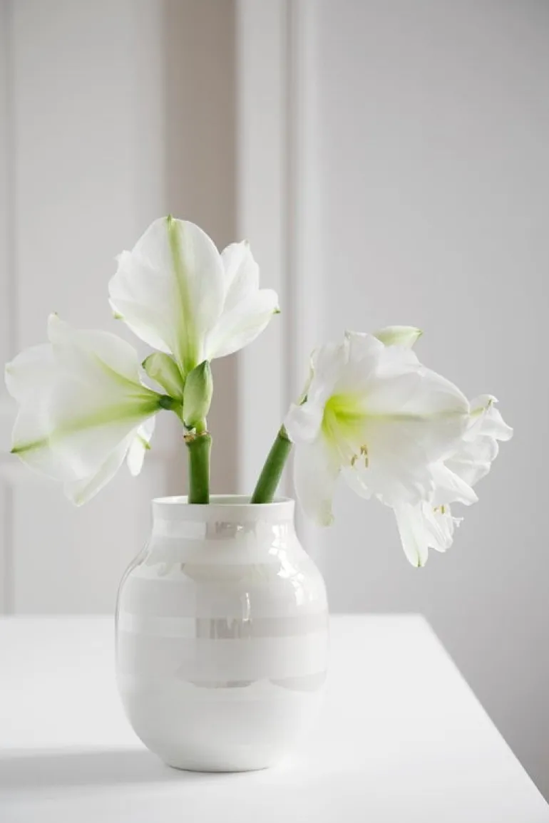 Omaggio-vaserna, från Kähler, är Ditte Reckwegs och Jelena Schou Nordentofts hyllning till keramikkonstnären Sven Hammershøi, vars signum var dekorativa, horisontella och vertikala linjer. Vaserna, med sin enkla och moderna design med breda linjer i flera olika färger, representerar en unik och djärv tolkning av Hammershøis keramikverk.
