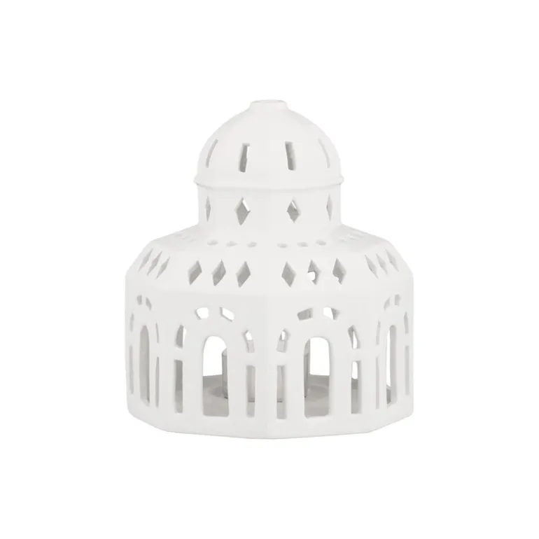 Kählers Urbania-lyktor avbildar en mängd olika byggnader, från bostadshöghus till kända landmärken, och erbjuder ett modernt alternativ till mer traditionella husformade lyktor. Designade av Mette Bache och Barbara Bendix Becker, är varje keramiklykta komplett med handskurna fönster som inte bara ger lyktan ett intressant, distinkt utseende, men också låter det varma skenet från ett värmeljus kasta vackra ljusmönster runt lyktan. Välj din favoritlykta eller samla hela serien för att skapa en hel stad av lysande fyrtorn!