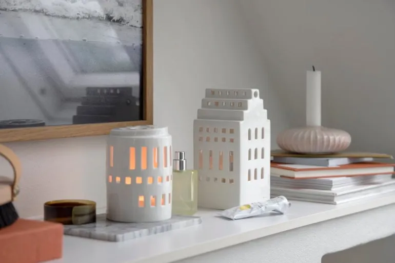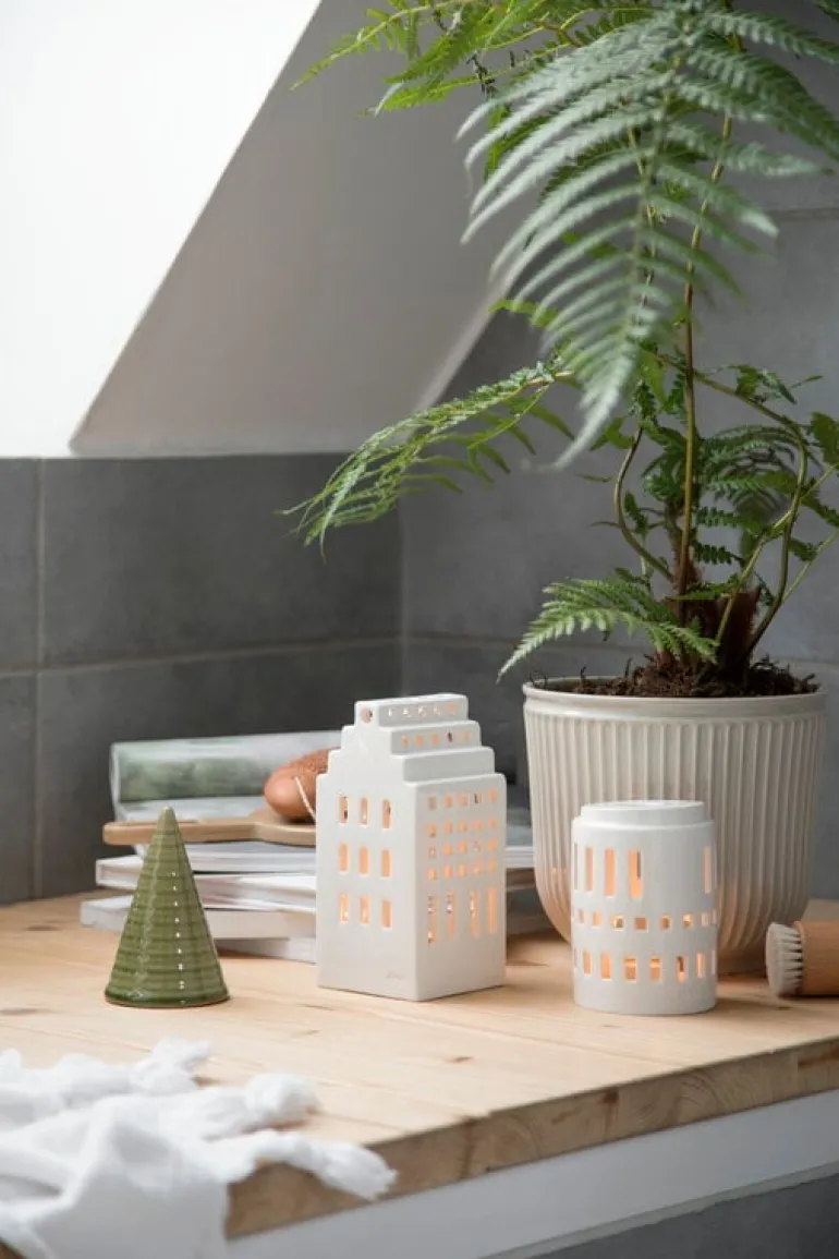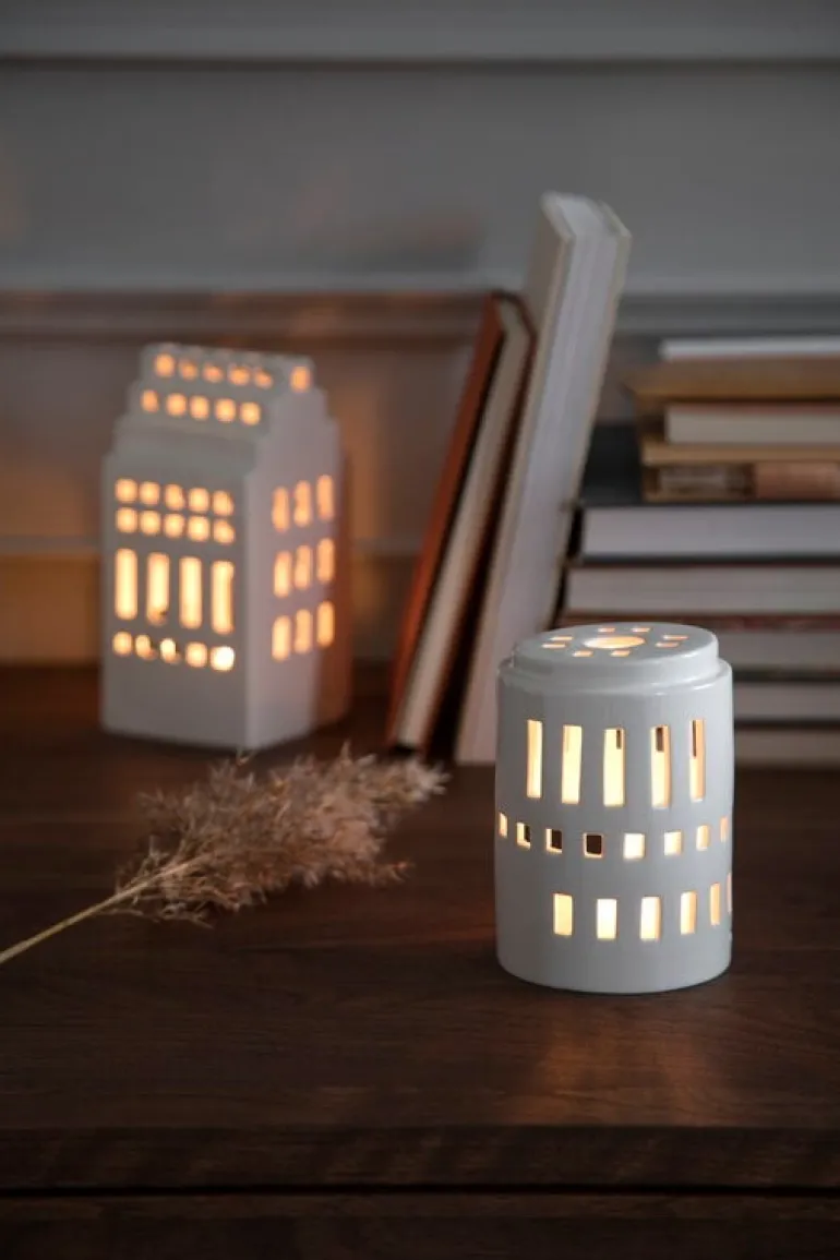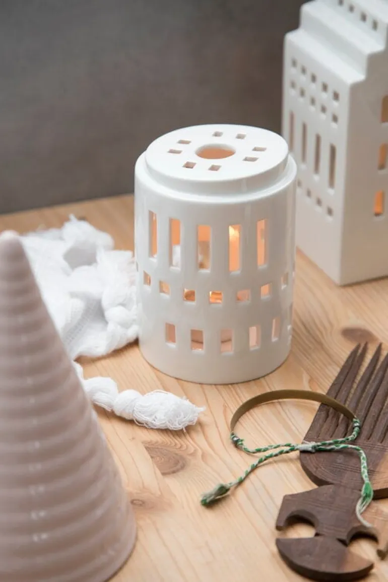 Lilla tornet-ljuslyktan från Kählers Urbania-serie liknar, som namnet antyder, ett litet runt torn. Ljuslyktan är tillverkad av keramik och har en vacker vit glasyr.