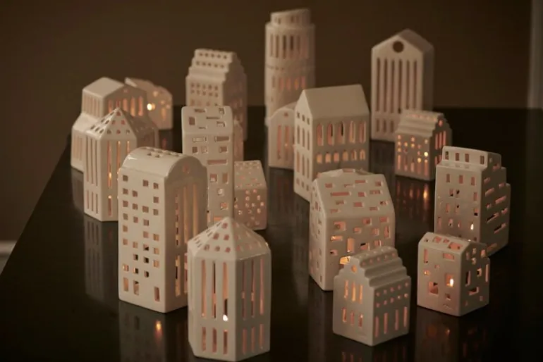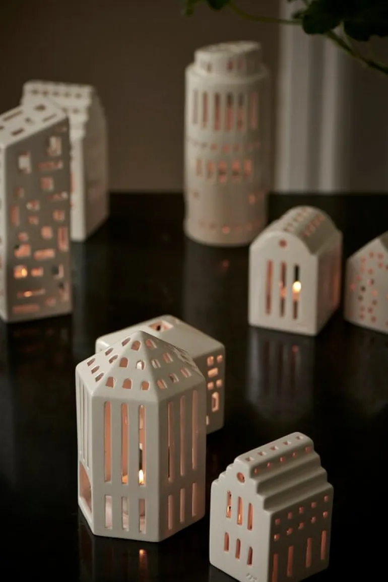 Kählers Urbania-lyktor avbildar en mängd olika byggnader, från bostadshöghus till kända landmärken, och erbjuder ett modernt alternativ till mer traditionella husformade lyktor. Designade av Mette Bache och Barbara Bendix Becker, är varje keramiklykta komplett med handskurna fönster som inte bara ger lyktan ett intressant, distinkt utseende, men också låter det varma skenet från ett värmeljus kasta vackra ljusmönster runt lyktan. Välj din favoritlykta eller samla hela serien för att skapa en hel stad av lysande fyrtorn!