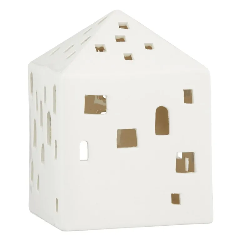 Ljuslyktan Town House från Kählers Urbania-kollektion liknar ett hus, vars asymmetriska fönster och snedtak ger lyktan ett intressant, distinkt utseende. Ytan på lyktan är klädd i en vacker, vit glasyr.