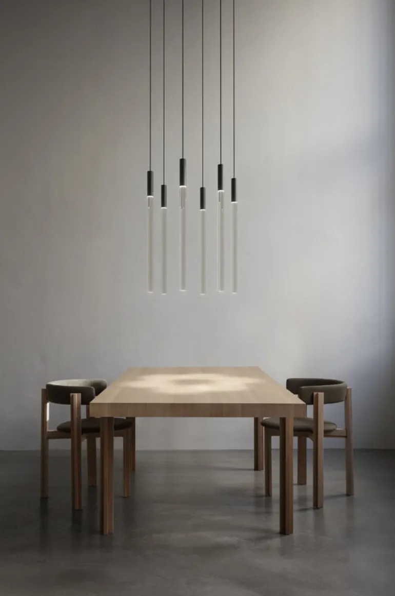 Den tubformade pendellampan Plexi är tillverkad av genomskinlig akrylplast och lyser med ett mjukt, inbjudande sken utmed hela sin längd – till och med den sandblästrade änden längst ner på lampan. Ljuskällan charmar betraktaren med sin raffinerade stil, som blir ännu mer effektfull om du för samman flera Plexi-lampor till ett skinande arrangemang i vardagsrummet eller matsalen. Pendellampan Plexi gör sig även utmärkt i offentliga miljöer, i allt från hotell till restauranger och kontor.