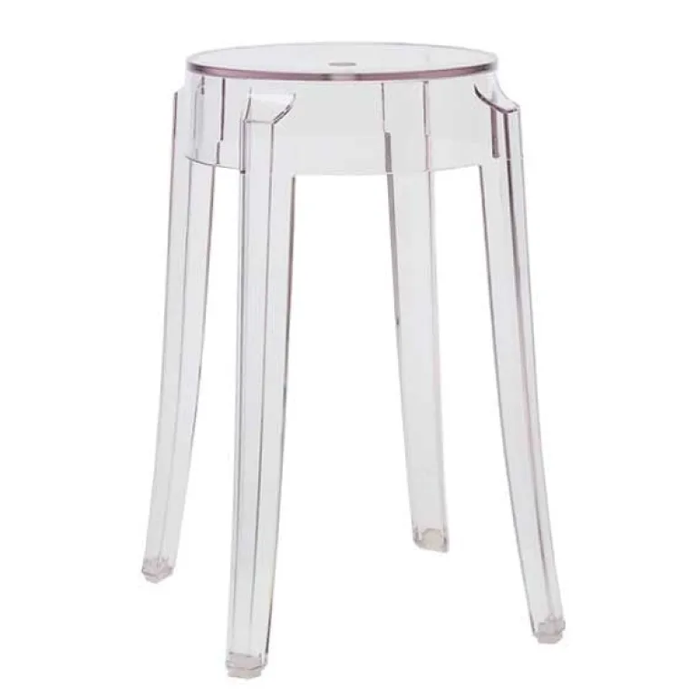 Charles Ghost från Kartell är en lätt men slitstark polykarbonatpall, som kan användas till allt möjligt. Benlinjen är rundad och lätt uppåtvänd, en ikon för den klassiska höga pallen. Det transparenta materialet är modernt. Stolen är stapelbar och passar för utomhusbruk. Charles Ghost är formgiven av Philippe Starck.