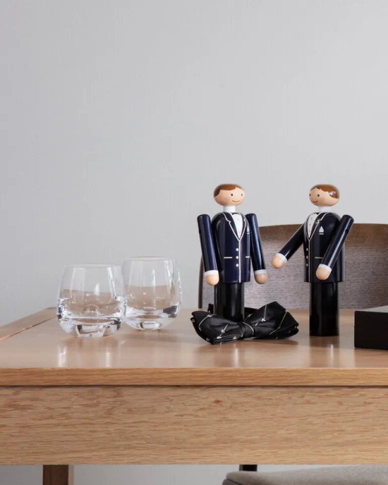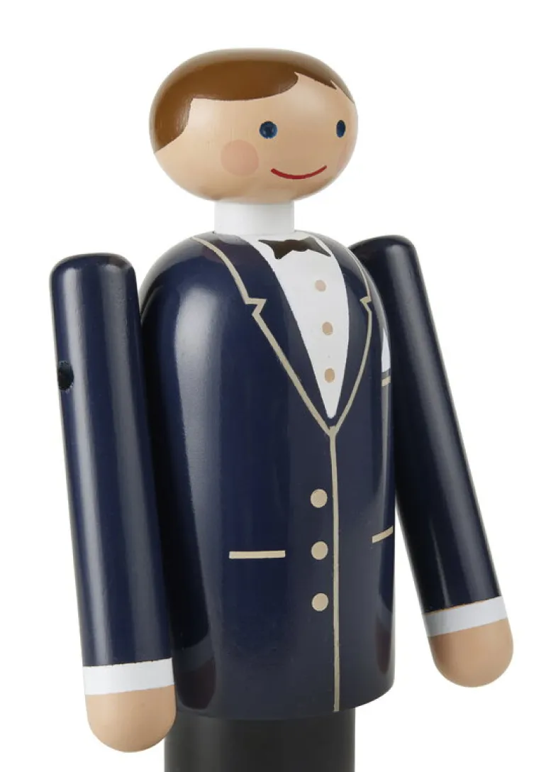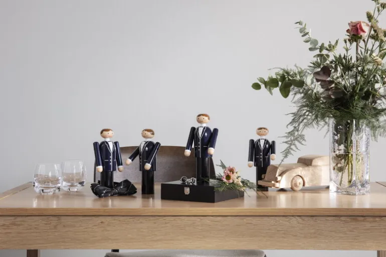 Kay Bojesens träbrudgum är perfekt att ge bort i present till nygifta eller till någon annan med sinne för romantik! Den tjusiga trädockan är klädd i en elegant, mörk kostym och bara väntar på att få sprida sitt kärleksbudskap med sitt vänliga leende oavsett var du väljer att placera den – som prydnad i bokhyllan eller i de lyckliga tus sovrum.