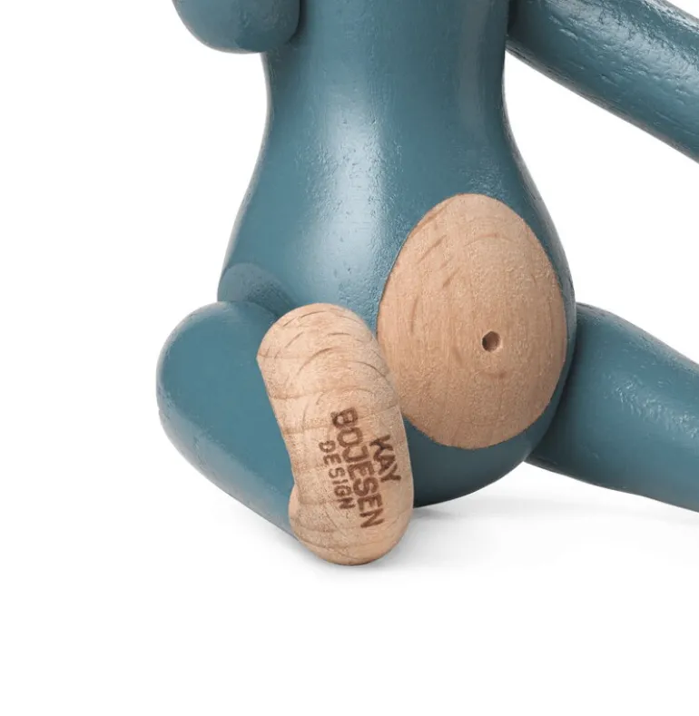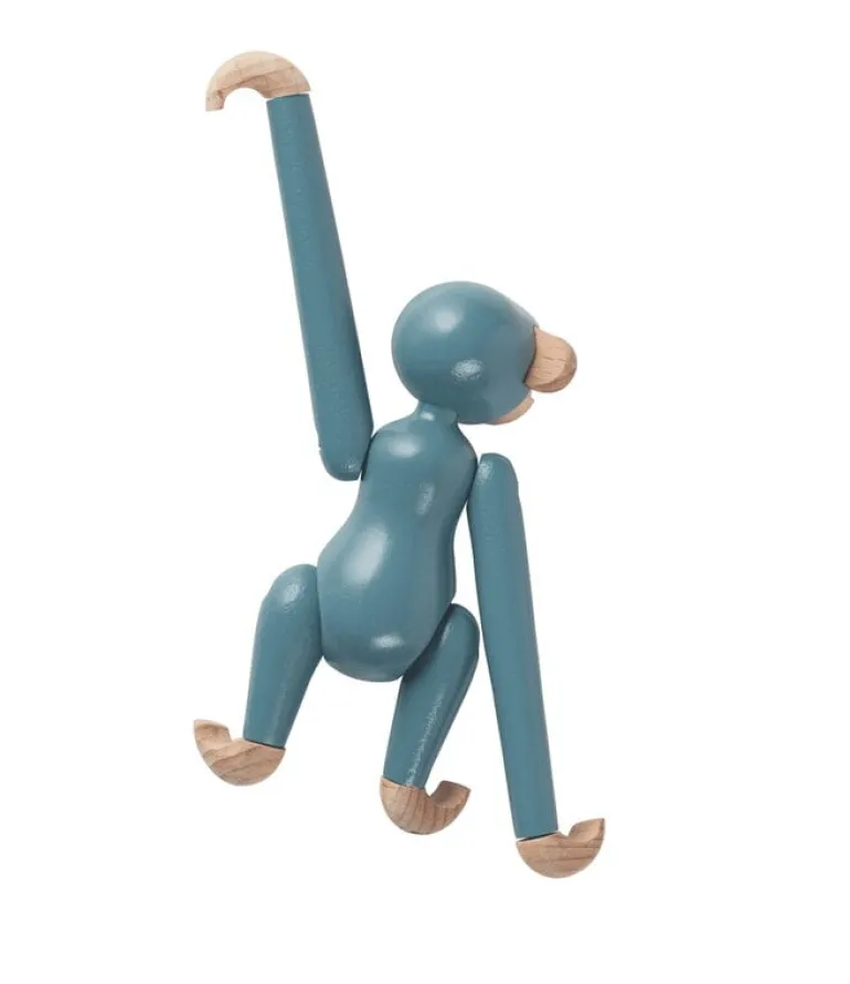 Kaj Bojesens Apa är en älskad klassiker inom skandinavisk design. Den här miniapan är tillverkad av bokträ, målad i en härlig blå färg och är 9,5 cm hög. Observera att huvudet på miniapan, minstingen i Bojesens apfamilj, inte är rörligt.