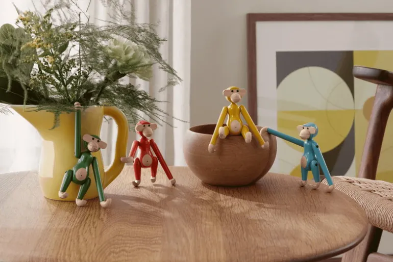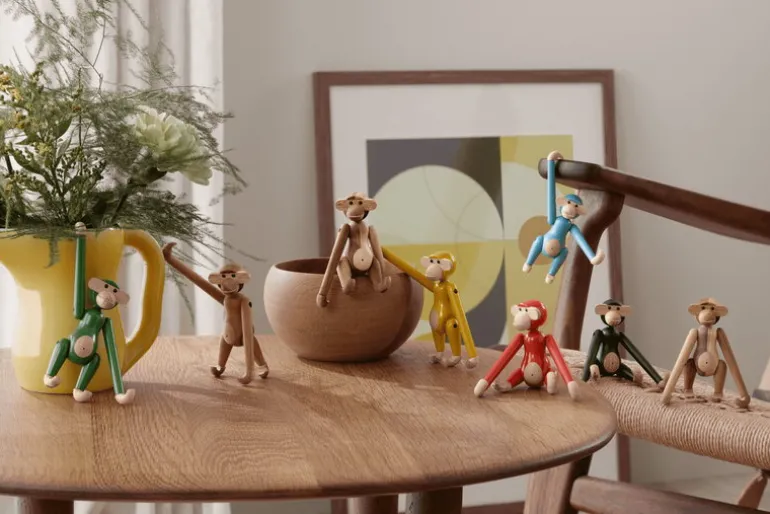 Bojesens apa har med sin busiga uppsyn och ljusa mage förvandlat barnrum till djungler och väckt drömmar om fjärran platser ända sedan 1951. Den är en permanent rollfigur i dansk tv, bland annat som maskot för naturprogram och som pris i frågesportsprogram. Varje apa görs för hand och består av 31 trädelar. Tack vare de små variationerna i färgton och ådring får varje apa en helt unik och charmig personlighet.