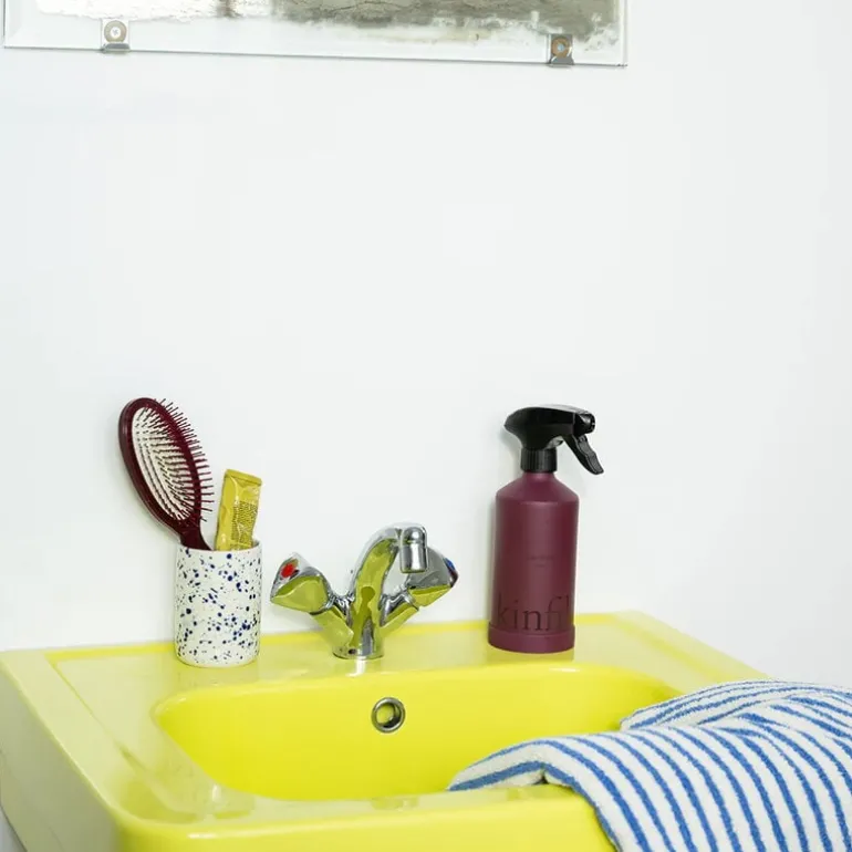 Kinfills köksrengöring gör alla köksytor fläckfria och skinande rena, oavsett om du skrubbar rostfritt stål eller en marmorskiva. I startpaketet ingår en påfyllningsbar sprayflaska i aluminium och en separat tub med rengöringskoncentrat med en fräsch, söt och träig doft. Kinfill Ever Bottle är designad för att hålla livet ut och har en sammetslen yta.