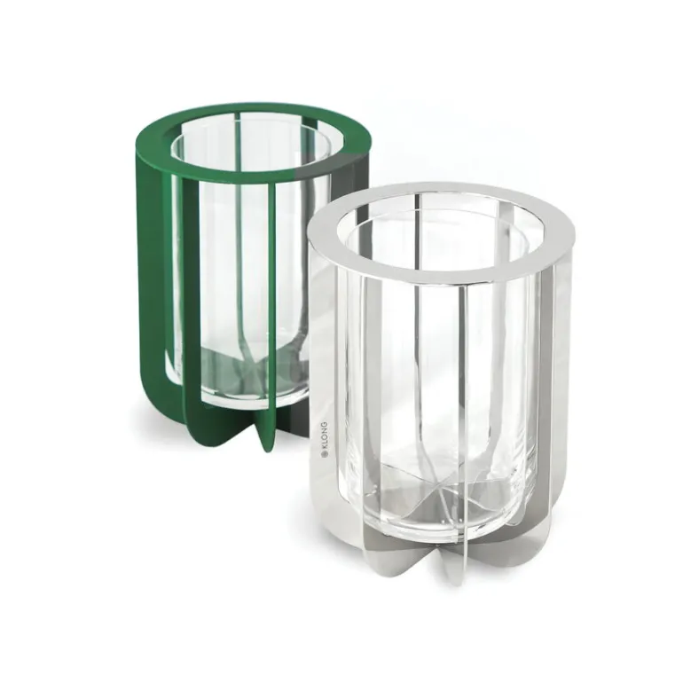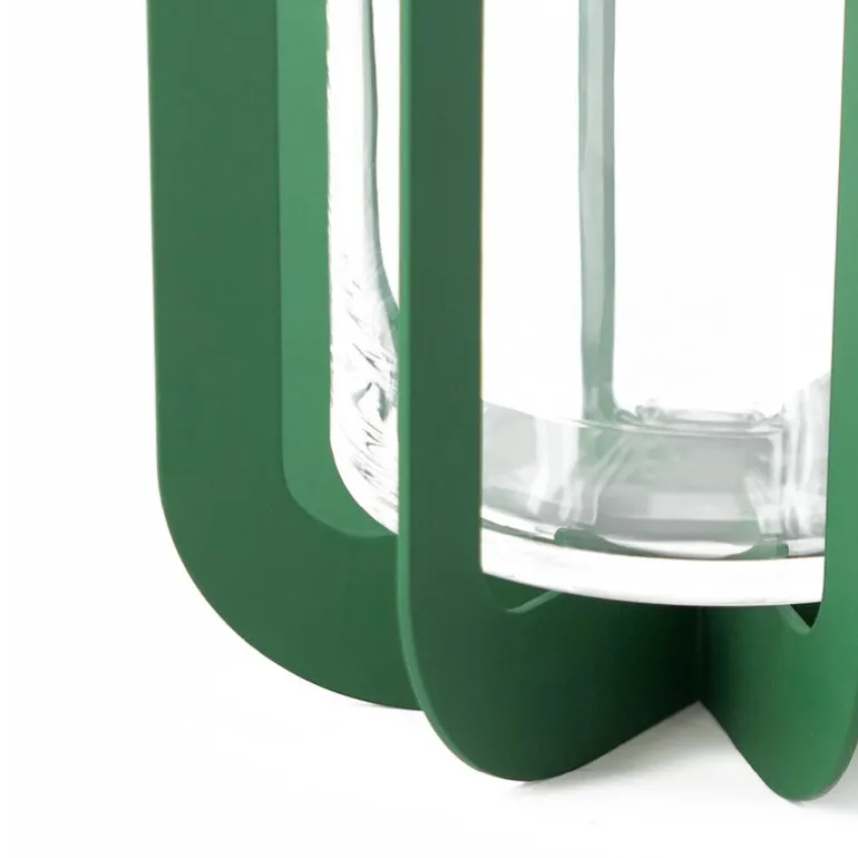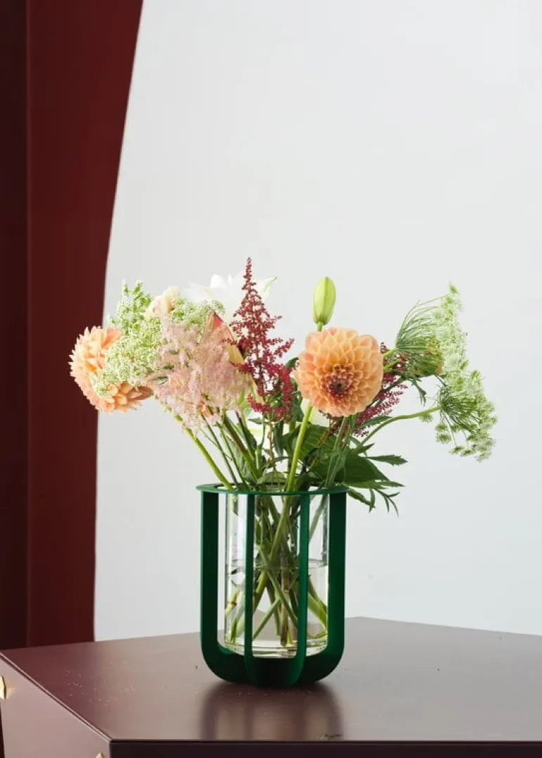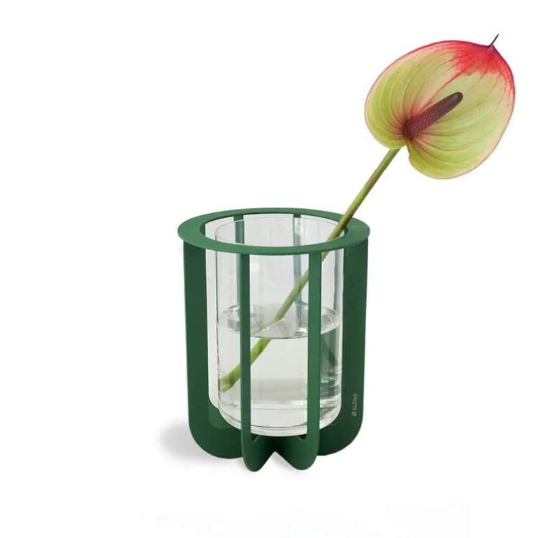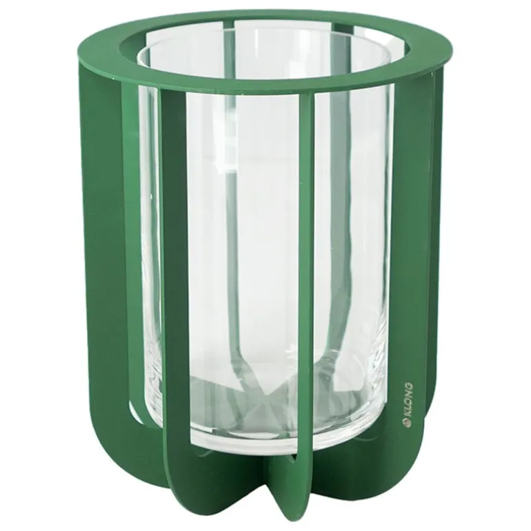Vasen Jazz från Klong kombinerar praktiskt användande med skönhet. Den dekorativa, pulverlackerade stålramen döljer en transparent glasbehållare som enkelt kan tas ut för rengöring. Vasen, som är designad av Anki Gneib, påminner om den livfulla andan från 1920-talets art déco och jazzklubbsvibbar. Vasen är en riktig blickfångare, oavsett om den är fylld med frodiga, färgglada buketter eller enklaste kvistar.