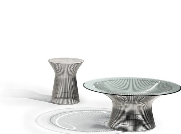 Sidobordet Platner från Knoll är en riktig designklassiker från 1966. Bordet, som designades av Warren Platner, har en struktur bestående av hundratals böjda stålstänger som håller upp en rund bordsskiva av glas. Platners vision var att fånga de dekorativa, försiktiga och graciösa formerna som är typiska för modernistiska designer – en vision han slutföljde till fullo. Platner-bordets design är än idag imponerande.