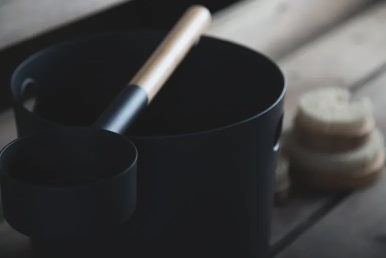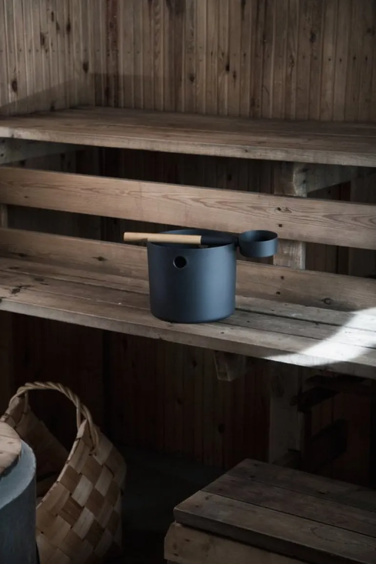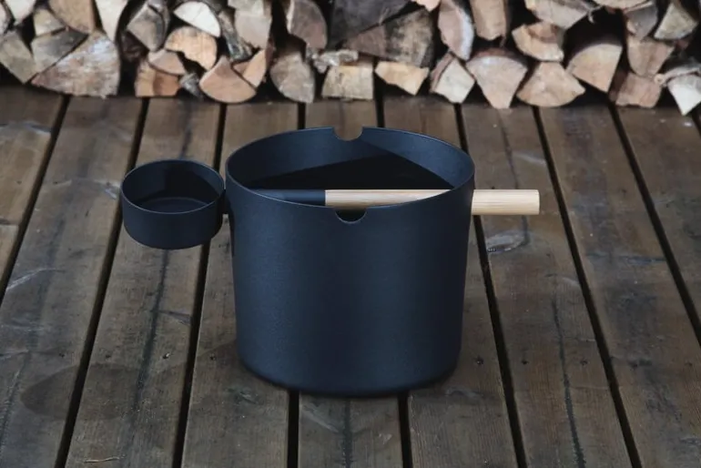 KOLO:s hink och skopa-set designades av Brita Flander 2016 och tar modern, innovativ design till den traditionella finska bastun. Förutom att kasta vatten på bastuvärmaren kan skopan användas som handtag till hinken. Hinken och skopan är tillverkade av målat aluminium och skopan har ett handtag av ljus bambu. Hink och skopa-setet finns i de tidlösa färgerna svart och vit.