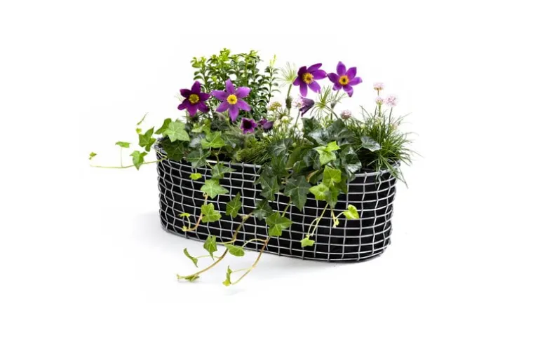 Korbos balkong planteringskorg är en vacker handvävd metallkorg designad speciellt för att plantera blommor och örter på din uteplats eller balkong. Balkong planteringskorgen levereras med en vattenpermeabel geotextil planteringspåse och två krokar som kan justeras för olika räcken.