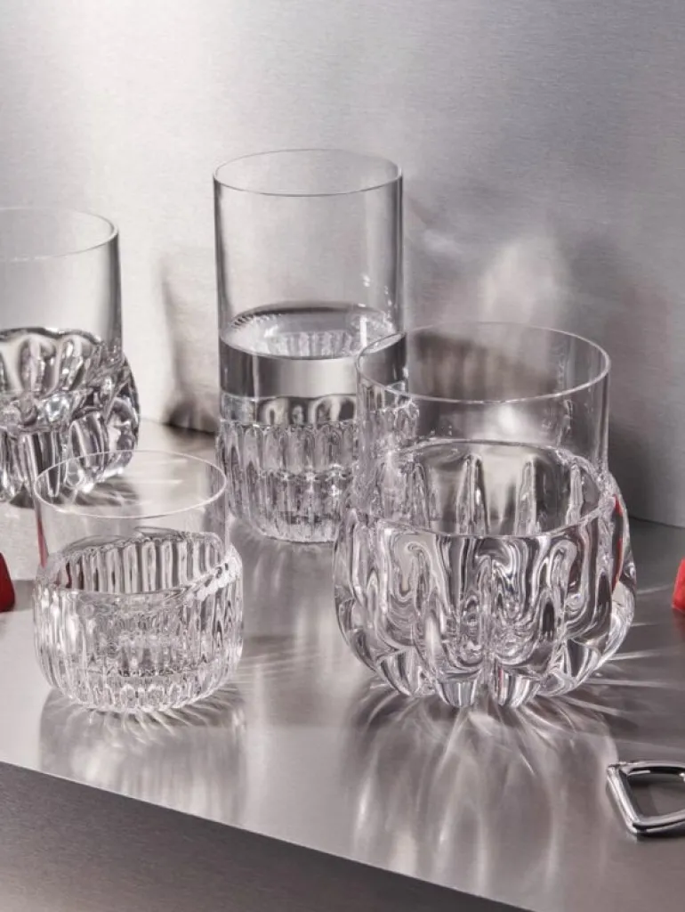 Kosta Bodas Jomo-glas ger en speciell touch till både vardags- och festdrycker – perfekt för att dricka vatten och läsk ur, eller för att servera long drinks och cocktails i. Den svenska designern Nina Christensen har gett Jomo-serien en iögonfallande, skulptural design, där de munblåsta formerna i botten bildar ett mosaikmönster av organiska, böljande kurvor och bågar. Tack vare sin stabila botten känns glaset tillfredsställande tungt i handen.