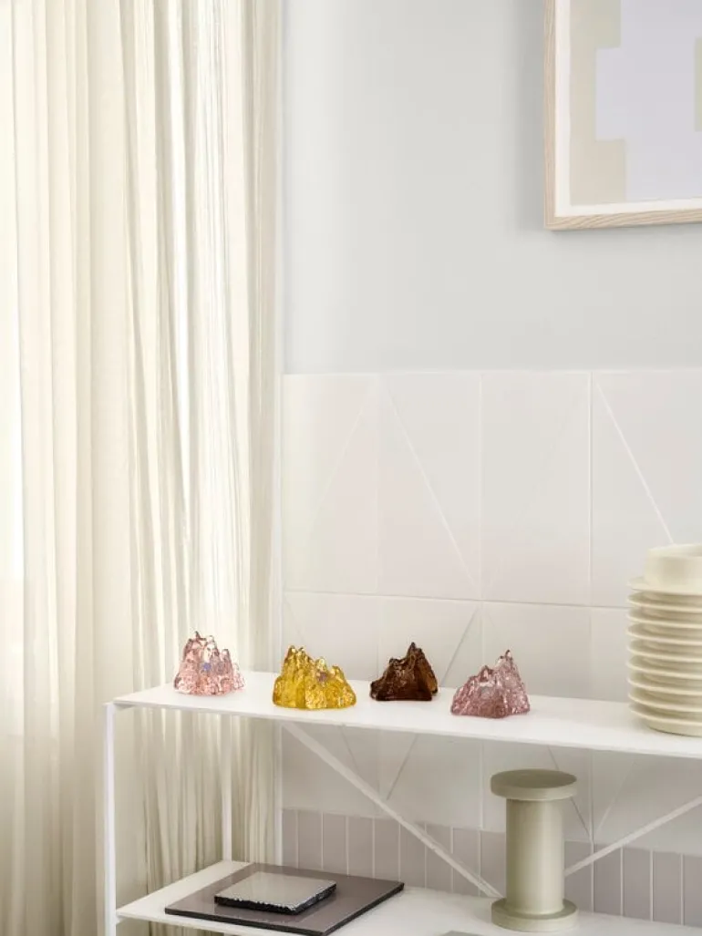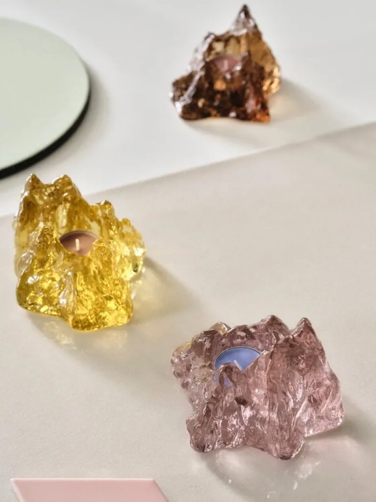 Ljuslyktan The Rock från Kosta Boda har, precis som namnet antyder, en dramatisk siluett som påminner om en klippa. Jämfört med sina naturliga inspirationskällor har dock dessa ljushållare färgats i olika livfulla nyanser som får The Rock att glittra och glänsa som en juvel. Den eleganta färgskalan passar bra ihop med en rad olika inredningsstilar och hemmiljöer. I maximalistiska interiörer blir kombinationen av flera ljuslyktor i olika färger en fröjd för ögat, medan det i minimalistiska hem räcker med en ensam The Rock i en lämplig nyans för att lysa upp i mörkret.