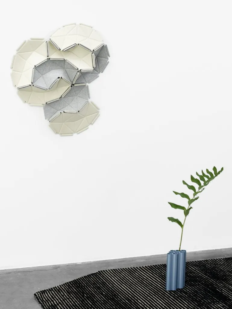 Tygplattorna Clouds från Kvadrat skapar mjuka ytor, levande färger och fantasifulla former på väggen. Tygplattorna i Cloud-kollektionen är designade av Ronan och Erwan Bouroullec. De kan användas för att skapa spännande, tredimensionella element – du skapar ditt eget verk och bestämmer själv dess form och storlek. Tygplattorna i ull är lätta att kombinera och passar både hemma och i offentliga miljöer. 2010 fick kollektionen Clouds utmärkelsen Design of the Year som delas ut av Design Museum London. Samma år fick den även priset Danish Design Award.