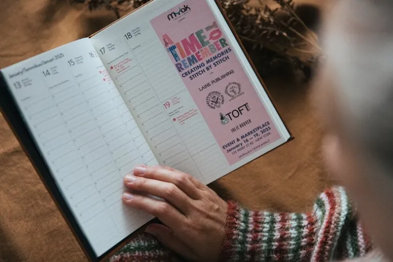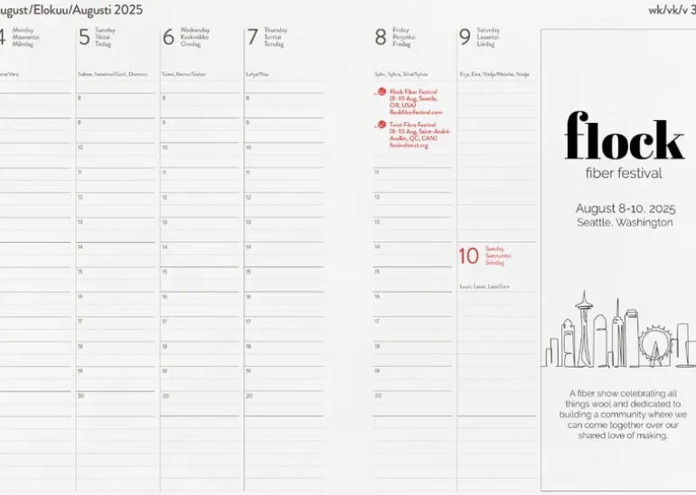 The Knitter’s Year 2025 calendar, utgiven av Laine Publishing, är en årsalmanacka som passar perfekt för hantverksentusiaster. Förutom att hålla koll på dina egna planer, så är den förifylld med över hundra intressanta garnhändelser och festivaler både i Finland och utomlands. I almanackan finns även en praktisk omvandlingstabell för stickor, mått på garnvikt, ett måttband och utrymme för egna anteckningar – perfekt för att skriva ner dina favoritstickmönster!