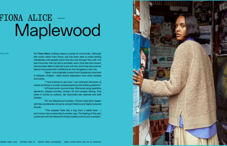 Finlands huvudstad Helsingfors finns med i årets (2023) vinterupplaga av Laine Magazine. Bläddra i tidningar i en charmig bokhandel, lyssna på musik i en inspirerande skivaffär och ta en kopp kaffe i det vackra vinterlandskapet – och sticka förstås! Laine Magazine nummer 16 innehåller 11 stycken stickbeskrivningar, bland annat tröjor, cardigans, sjalar, en väst och ett par sockor. Dessutom innehåller tidningen en artikel om Finlands Hantverksmuseum och deras arbete med att bevara kulturarvet, en intervju med Elaine Tom, skötselråd för dina stickade favoritplagg och en text av stickningsproffset och influencern Jeanette Sloan, recept, och mycket annat.