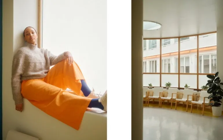 Vårt höstnummer Laine 22, Aalto, innehåller mysiga men ändå stiliga stickade plagg för säsongen! Numret är även en hyllning till arkitekturen – bilderna togs på Pemar sanatorium, designat av den berömda finska arkitekten Alvar Aalto. Byggnadens unika färger och former skapade en perfekt bakgrund till våra höstplagg, fulla av intressanta stilar och tekniker, från kabelstickning och spetsar till stickade strukturmönster.