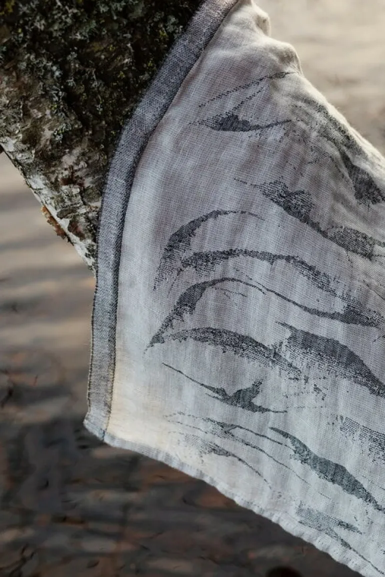 Handduken Aallokko i linne, designad av Reeta Ek för Lapuan Kankurit, har ett vackert mönster som föreställer vågor. Det är också därifrån handdukens namn kommer: Aallokko är finska för “vågor” eller “svall”.