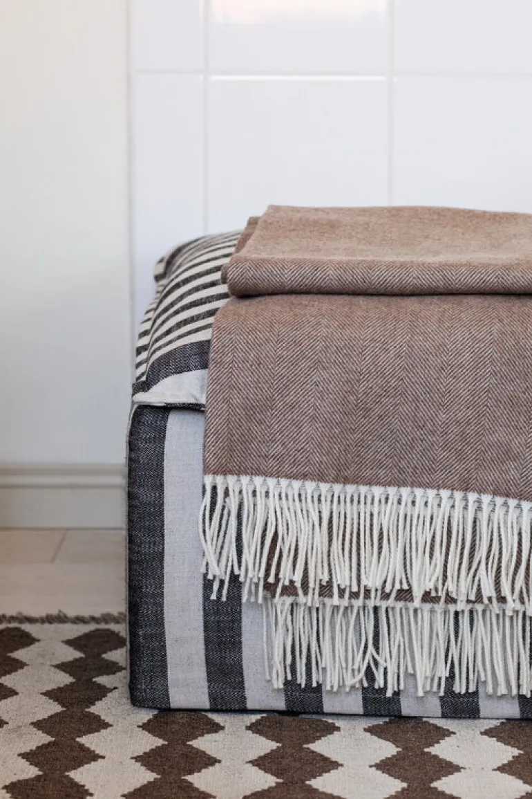 Elli-filten är tillverkad av en lyxig blandning av mulesingfri merinoull och finull och vävs i Lapua i Finland. Visste du att varumärket Lapuan Kankurit bokstavligen översätts till ”vävare i Lapua”?