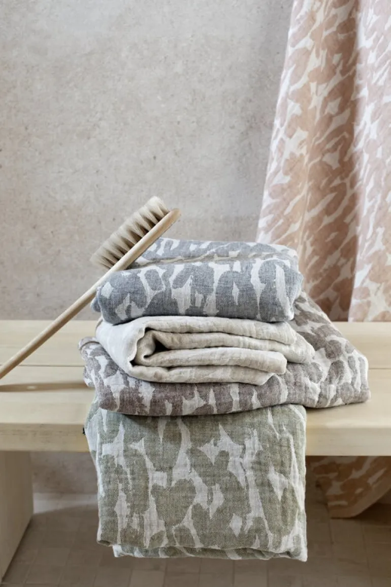 Handduken Jäkälä från Lapuan Kankurit är tillverkad av linne, ett material som är absorberande, snabbtorkande och lättskött – det perfekta valet för badrummet som handduk eller ansiktshandduk, men fungerar också som en stilfull kökshandduk. Handduken är dekorerad med ett vackert mönster, designat av Saara Obele, som hyllar den finska skogen och dess hemligheter. Materialen och tillbehören till handduken kommer från Europa, främst från Finland. Linnehandduken vävs i Finland vid Lapuan Kankurits egna väveri.