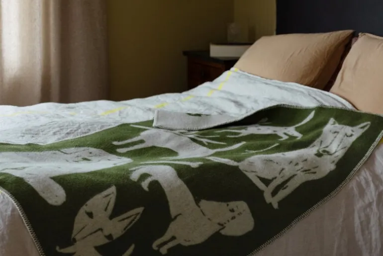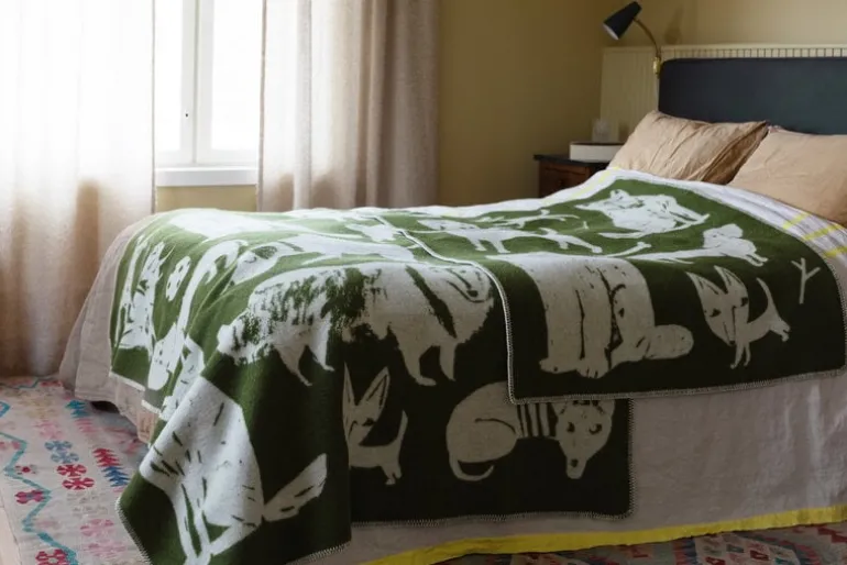 Filten Koirapuisto från Lapuan Kankurit pryds av en glad hundflock som tecknats av den finske illustratören Matti Pikkujämsä. Koirapuisto betyder ”hundpark” på finska. Den här lilla filten är perfekt för barn, och varför inte även för dina fyrbenta vänner?