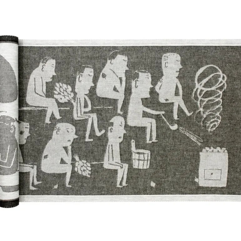 Miesten Sauna från Lapuan Kankurit pryds av en illustration av Matti Pikkujämsäs. Den föreställer en grupp män som avnjuter ett traditionellt, finskt bastubad – Miesten Sauna är finska för ”herrbastu”. Underlaget är tillverkat i en blandning av europeisk bomull och linne, och har en känsla av kvalitet och hantverkstradition. Sittunderlaget Miesten Sauna är vävt i Finland på Lapuan Kankurits eget väveri.