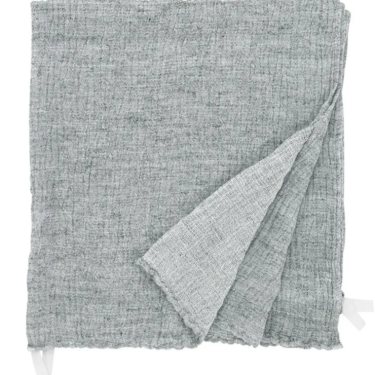 Det stora badlakanet Nyytti från Lapuan Kankurit har smyckats med ett lugnande och naturligt tvåtonsmönster av Elina Airikkala. Tack vare de fyra bandhängarna på kanterna kan du hänga eller surra ihop handduken på flera olika sätt.