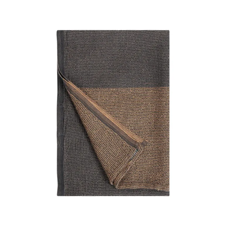 Terva badhandduk från Lapuan Kankurit är det perfekta stället att svepa in sig i efter en varm dusch eller bastu. Handduken är tillverkad av en innovativ blandning av europeiskt linne, Tencel och bomull med Oeko-Tex-standard. Materialet är lätt, snabbtorkande och absorberande, och känns behagligt mjukt mot naken hud. Terva-kollektionen inkluderar handdukar, bastusitsöverdrag och badrockar i olika storlekar och material, huvudsakligen producerade i Lapuan Kankurits egna väveri i Lapua, Finland.