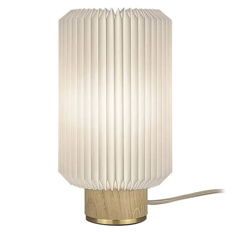 Le Klints bordslampa Cylinder är inspirerad av de klassiska veckade skärmarna som märket är känt för. Cylinder har ett passande namn: Den cylindriska formen ger den traditionellt veckade skärmen lite mer vågad stil. Lampan har också en fascinerande kontrast mellan den fina handvikta skärmen och lampans andra delar: nyanserade färger och robusta material skapar lite drama i den annars enkla designen.
