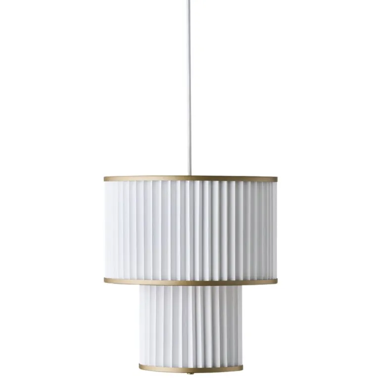 Plivellos pappersskärm består av flera nivåer och påminner om en art déco-ljuskrona. Skärmen har guldfärgade ringar som skiljer de olika lagren åt och ger lampan en extra touch av elegans och finess. Namnet Plivello är även en diskret blinkning åt lampans struktur; en kombination av “pli”, franska för “veck”, och “levello”, italienska för “nivå”.