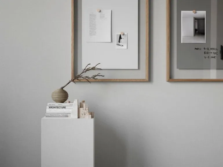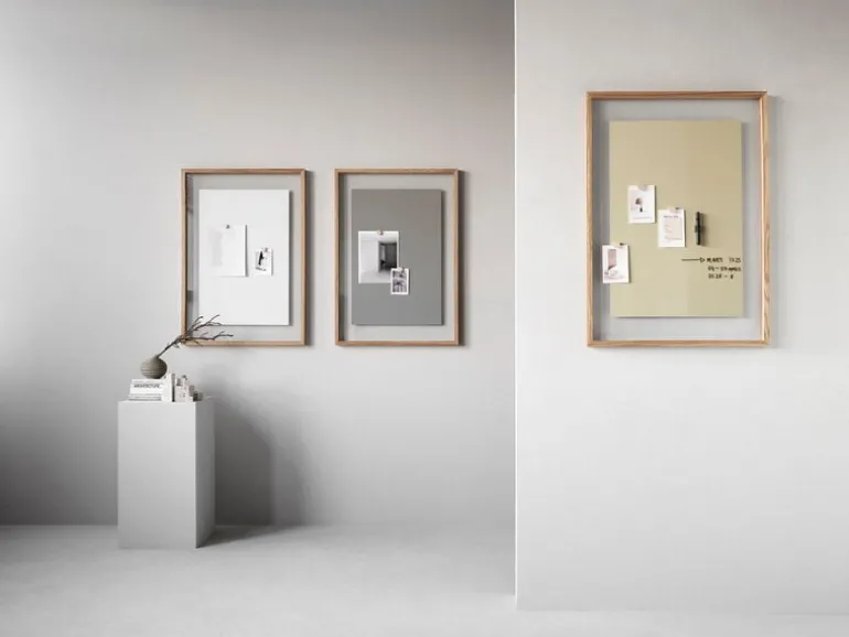 Lintex skrivtavla A01 i glas, designad av Afteroom, utmanar vår syn på den traditionella whiteboardtavlan med dess sofistikerade unika design. Den moderna anslagstavlan består av en enkel ekram och en glasskiva med en magnetisk rektangel placerad i mitten – kompositionen ser nästan ut som en abstrakt målning eller en konstaffisch. Anslagstavlan A01 är tillverkad i tempererat glas med låg järnhalt, som är helt genomskinligt utan den grönaktiga nyansen som finns i vanligt glas – därför ser den geometriska kreationen ut som att den flyter fritt inom ramarna. Tack vare den unika designen är A01-glastavlan även perfekt för hemmakontoret.
