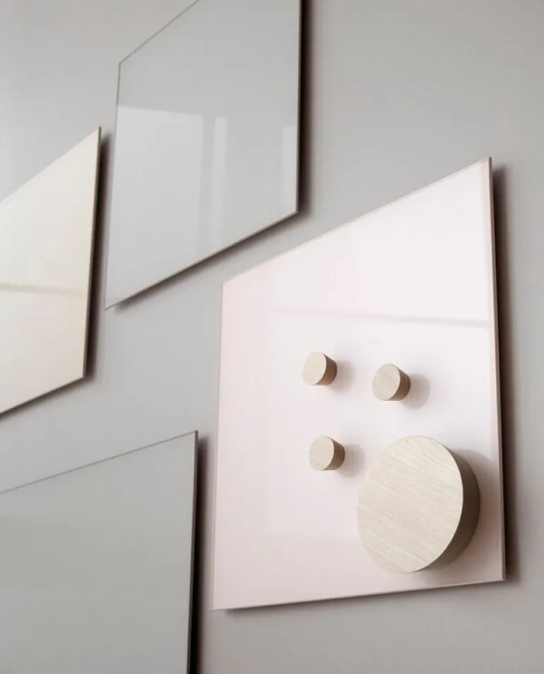 Mood Wall kommer i olika storlekar och nyanser som passar allt från hemmakontoret till gigantiska konferensrum. Den magnetiska whiteboardtavlan i glas är tillverkad i tempererat glas med låg järnhalt, som är helt genomskinligt utan den grönaktiga nyansen som finns i vanligt glas, och kan användas som en skrivtavla eller för att sätta upp anteckningar, bilder och att göra-listor. Notera att en glastavla kräver starkare magneter än en vanlig whiteboardtavla.