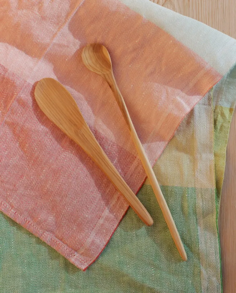Kökshandduken Ilo från Lokal Helsinki är en handduk i linne som kan användas till mycket, som att torka disk med eller torka händerna på, eller täcka över en omgång kanelbullar som står på jäsning. Handduken, som formgivits av konstnären Veera Kulju, har harmoniska färger och skapar en lugn och rofylld stämning i köket.
